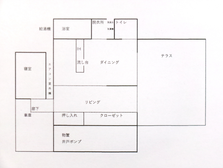 居宅は厩舎をリノベーション、IHコンロ、ビルトイン食洗器、電気温水器設置。